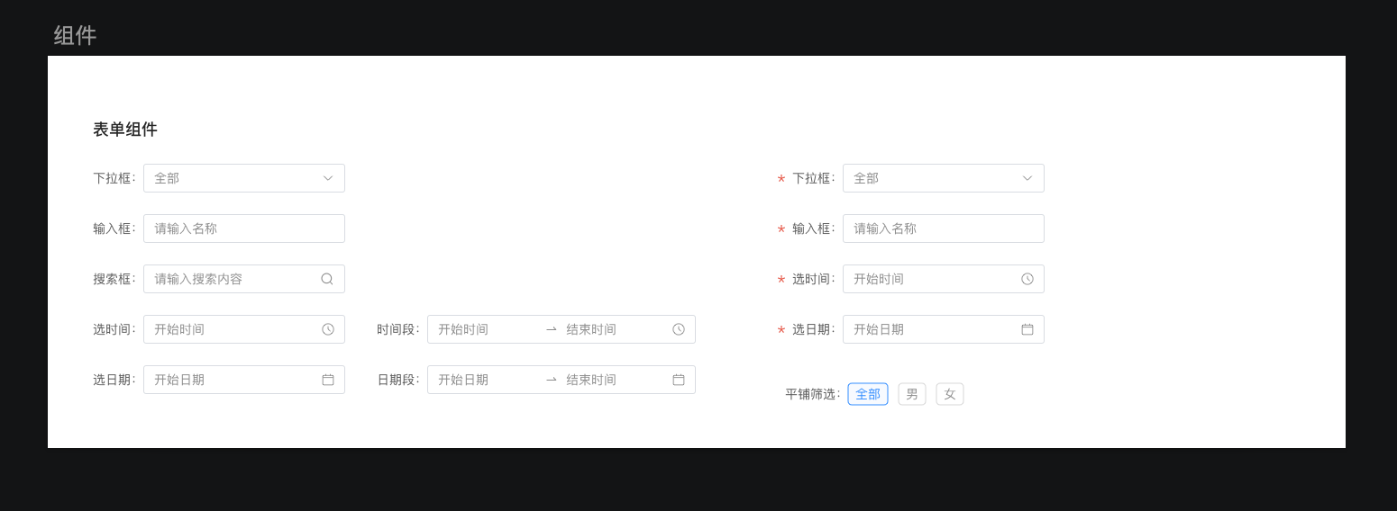 對表單頁的模塊,布局進行一些場景提取,通過對基礎組件的內容拼接形成區塊化高級組件,表格組件化,實現自適應、可填充,提高組內協作。