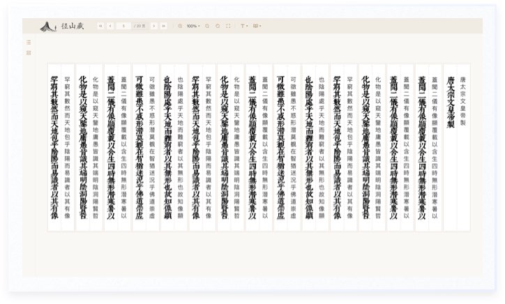 古書按列呈現(xiàn),每一列都制成為長卡片,古體字和簡體字一一對應(yīng),內(nèi)容和背景區(qū)分開且大量留白,列與列劃分明顯