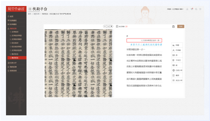 標記文字通常用于解釋、說明或強調藏經中的某些部分,將其放在右側可以確保用戶在閱讀藏經的同時,能夠輕松地獲取到這些額外的信息。這種布局方式也有助于減少用戶的認知負擔,提高閱讀效率。